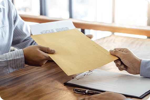 4  完了・解決案件が完了いたしましたら、ご報告とともにお預かりしていた完了後の書類をお渡しいたします。その後もお客様のデータは保存されておりますので、なにかございましたらお気軽にご連絡ください。